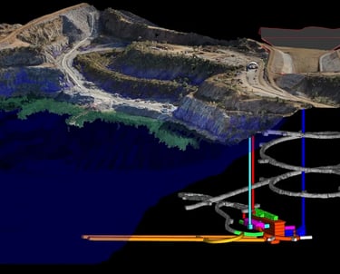 Optimización de Pit y Diseño de Rajo Abierto (Open Pit): Determinación de límites económicos finales mediante algoritmos de Lerchs-Grossmann. Diseño de fases, botaderos y rampas de transporte optimizadas para minimizar el ciclo de acarreo.